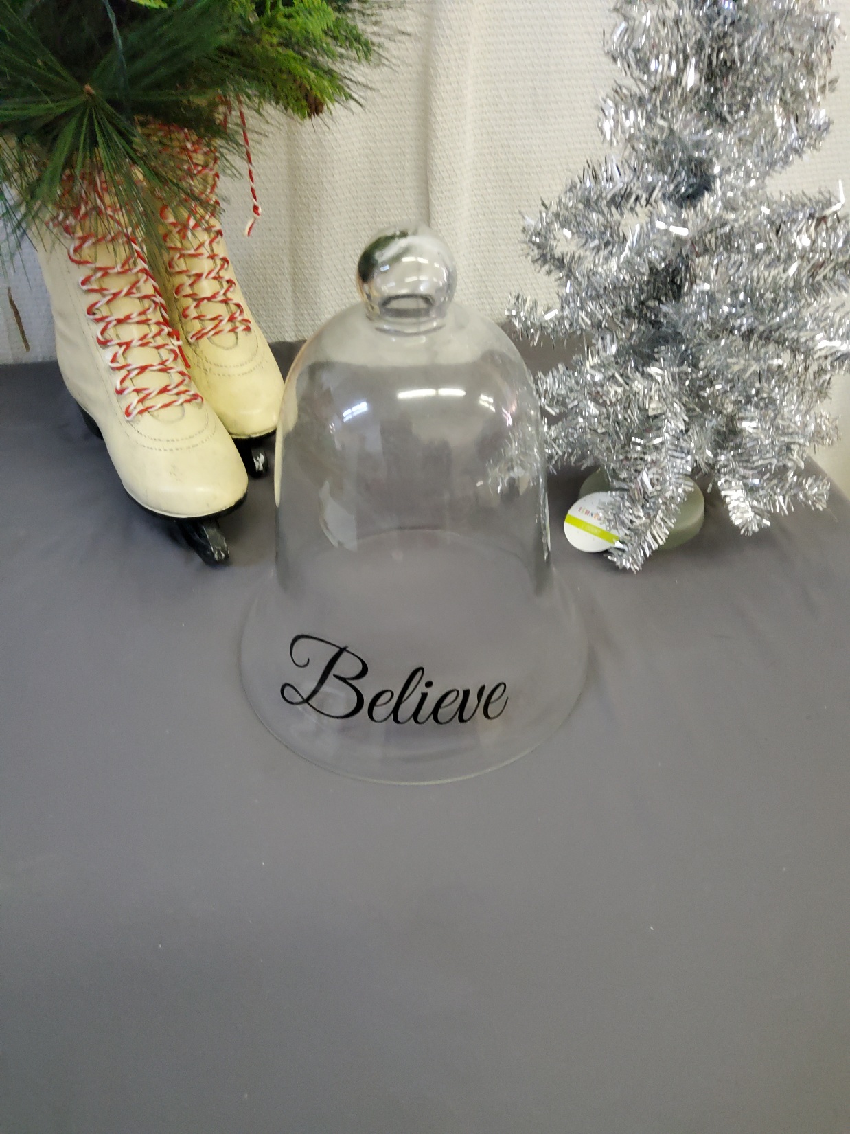 Glass Bell with BELIEVE on it. 12X20