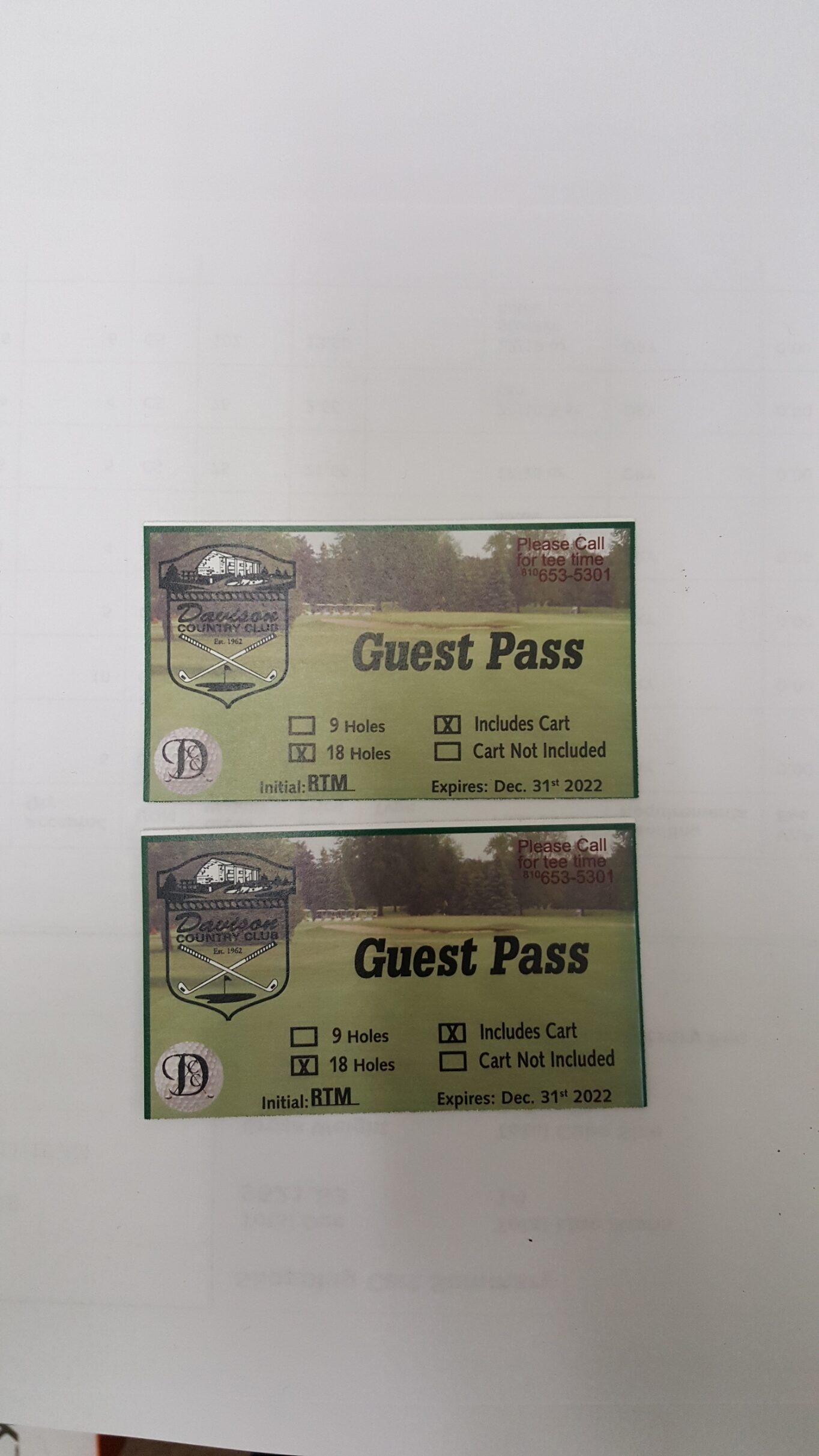 Davison Country Club Golf Passes