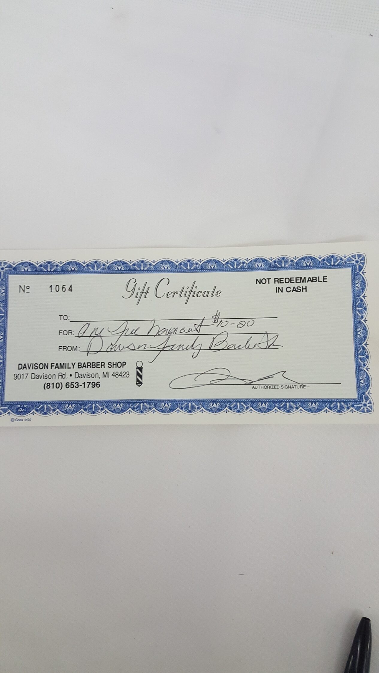One Free Haircut courtesy of The Davison Family Barber Shop