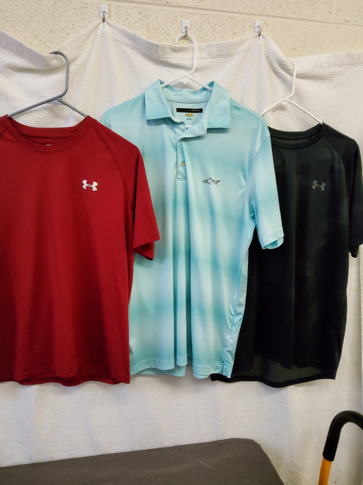 Like new mens shirts – 2 Under Armour 1- Shark golf shirt